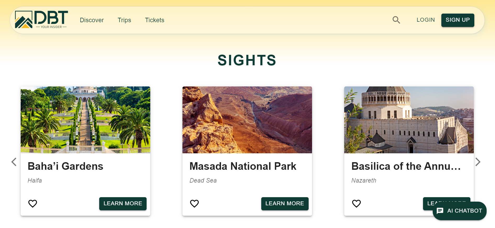 DBT is a full-stack web application that allows users to explore and discover popular tourist attractions. Built using React for the frontend and Node.js/Express for the backend, the application connects to a PostgreSQL database hosted on Azure Cloud. The platform features a responsive design with Material-UI, secure JWT-based authentication, and a seamless user experience. It was deployed with Netlify for the frontend and Render for the backend, ensuring fast and reliable access to data for travelers.